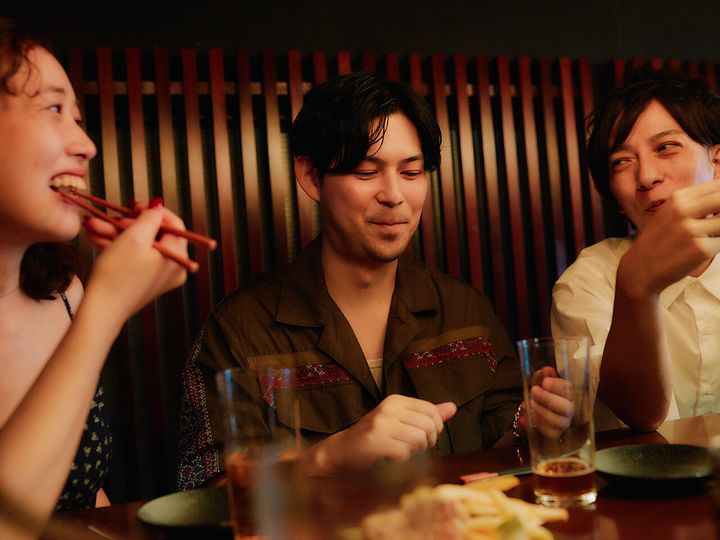 1軒目では、旨い肉をアテにしてお酒を楽しみ、清水さんが旅人になった経緯やおふたりの恋愛観を聴取。続いての話題やいかに――?