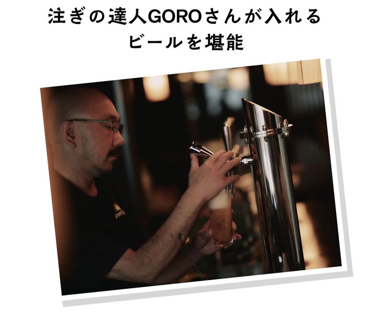 「ビールは注いだ瞬間が一番ウマい」というGOROさんの一言に、4人は乾杯を待ちきれず我先にと喉へ流し込んでしまい…。