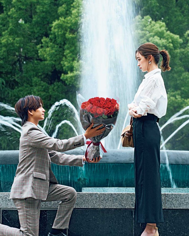 「サッちゃんと離れて改めて大切さがわかったんだ。僕と結婚してください」。久しぶりに見るケンくん、やっぱり顔が最高にいい…。¥55,000(ア ヴァケーション)サンダル¥17,600(ピシェ/アバハウスインターナショナル オンラインストア)ピアス¥1,980(アネモネ/サンポークリエイト)ブレスレット¥19,800(quip queint/フーブス)[ケン]ジャケット¥56,100パンツ¥31,900(ともにナノ・ユニバース/ナノ・ユニバース カスタマーサービス)