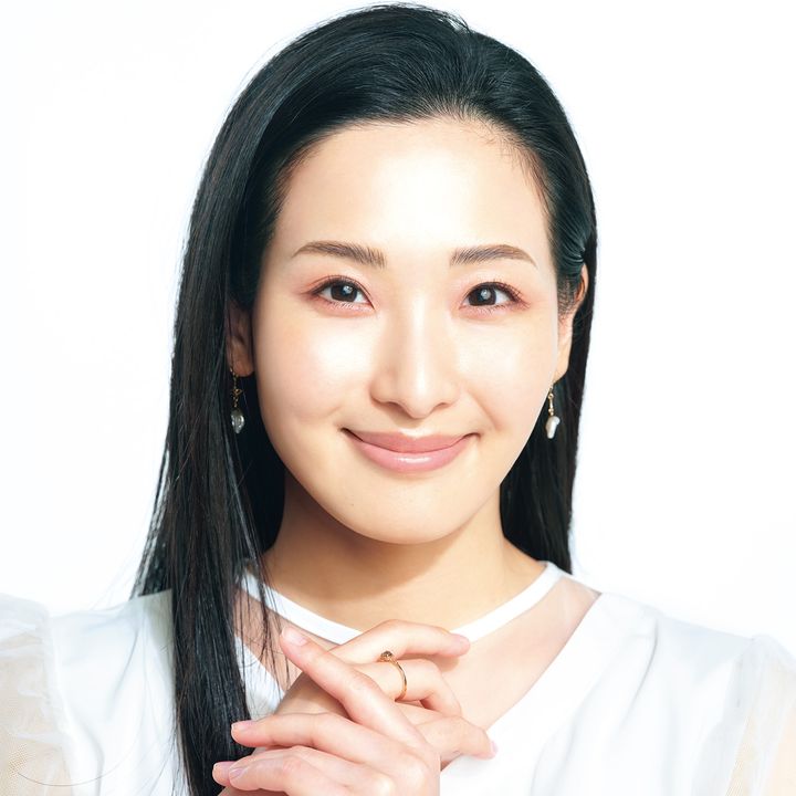 「宝塚時代のメイクはお粉しっかりめのマット仕上げ。退団してツヤメイクに開眼しました。日本風の顔立ちなのですが、ファンデは目の下の▽ゾーンのみに入れると立体感が出ます。さらに目元や頰にツヤを足しメリハリを。朝もクリームでしっかり保湿して肌自体のツヤも大事にしています。こだわっているのは眉。眉頭を立ち上げるハリウッドアイブロウリフトをして理想の眉を手に入れました」