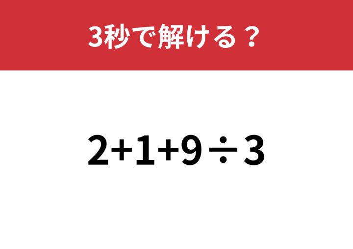3. 大人なら間違えずに解けますよね?「2+1+9÷3」3秒で解ける?