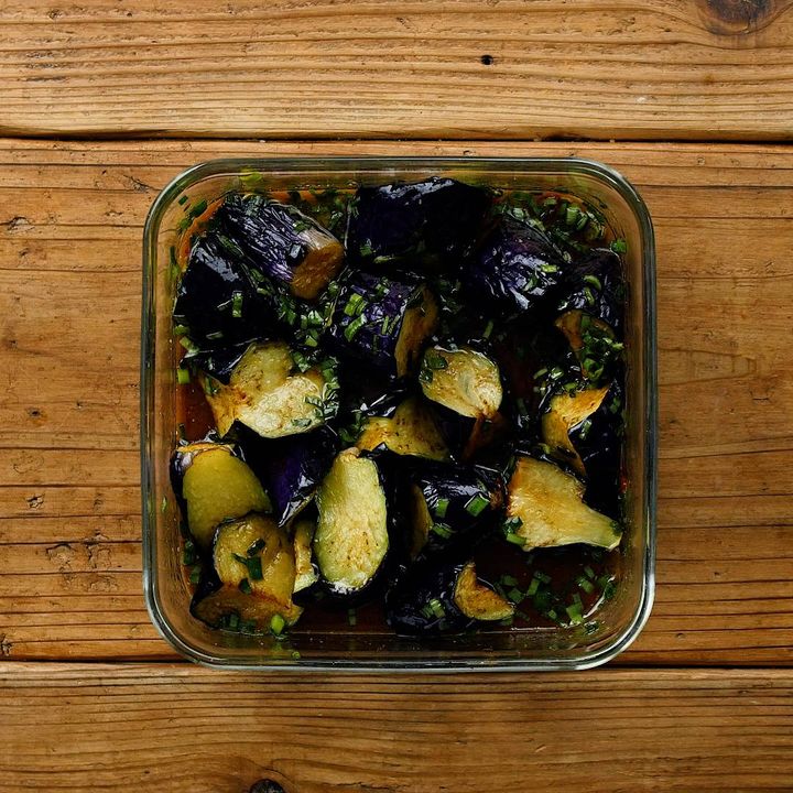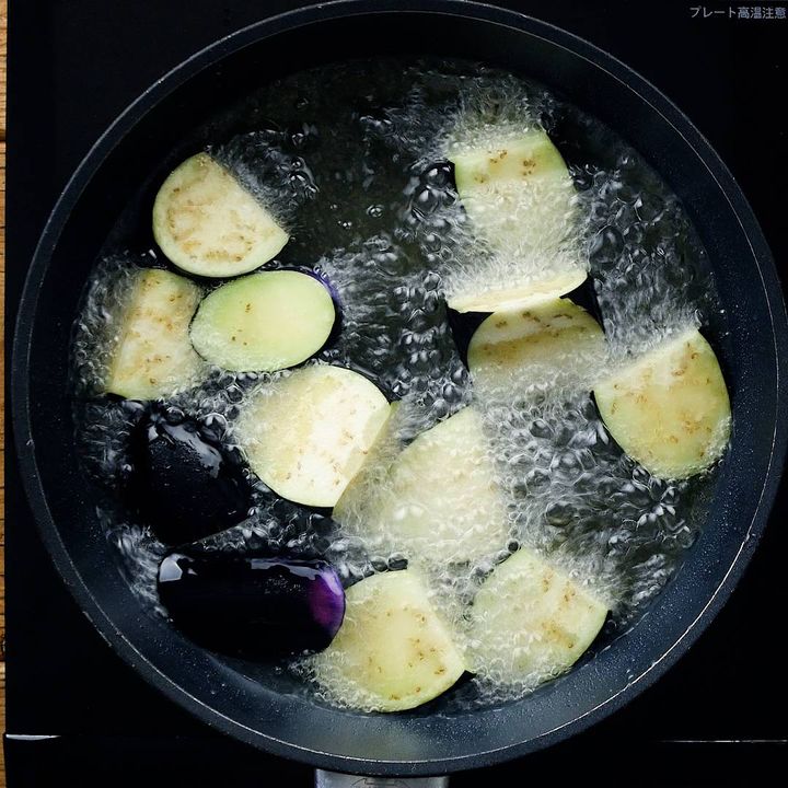 4: 1〜2分揚げてなすが少しやわらかくなったら①に加えます。軽く混ぜて15分ほどなじませたら完成です。