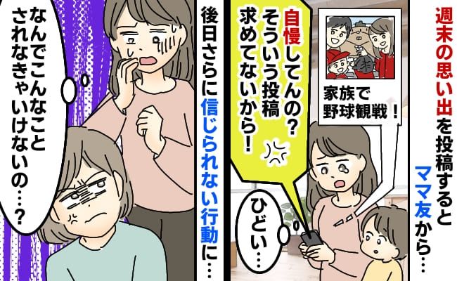 家族との思い出写真を投稿すると「そんな投稿するな!」とママ友が文句。後日信じられない嫌がらせを…
