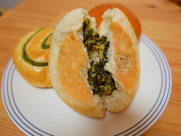 さまざまな季節限定のパンが並ぶなか、私は「うずまっちゃクリームぱん」をチョイス。抹茶を混ぜた自家製のカスタードクリームがたっぷり詰まったパンでした。カスタードと抹茶の爽やかな甘さが口に広がります。