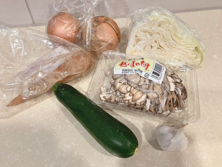 ちなみに、今週、野菜室リセット時に冷蔵庫にあった野菜は下記。
