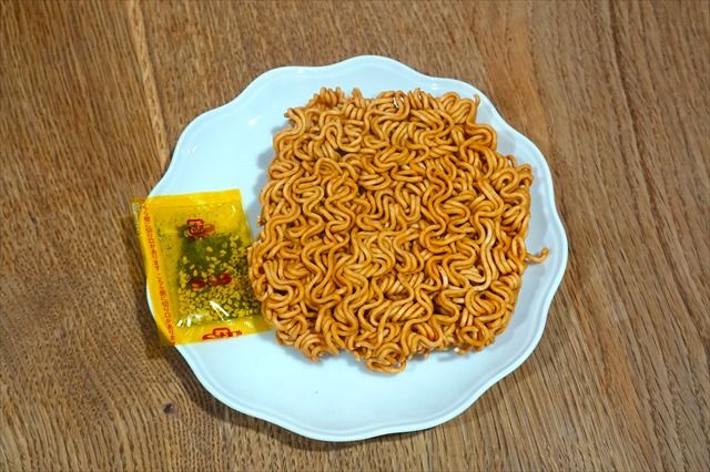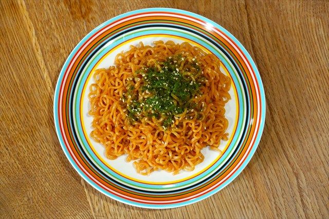 十分に麺がほぐれたら皿に移して、ふりかけをかけたら完成! なんて素朴な見た目でしょう。