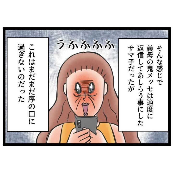 家族とのつながりを大切にするオーストラリアの文化を理解しつつも、義母とのやり取りを負担に感じるサマ子さんは距離感に悩んでいました。そんなとき、義母のスマホがアカウント乗っ取りの被害に遭い、義母はSNSをやめることになります。結果、サマ子さんの悩みは解消に向かったのでした。