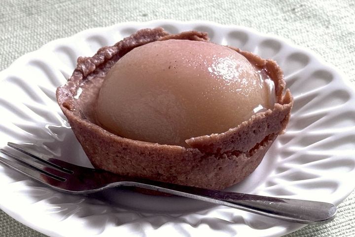 みずみずしい見ために贅沢感たっぷり!「ごろっとした1/2個分桃のタルト」