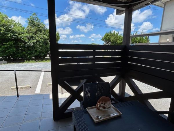 かき氷をいただくのが良いのです。暑くてかき氷!と食べに行っても、いざ食べようとするとエアコンの効いたところではちょっと冷たすぎたり。なのでテラスで、遠賀川を渡る風を感じつつもちょっと暑いか?と感じるくらいが、かき氷を食べるには最適かな?