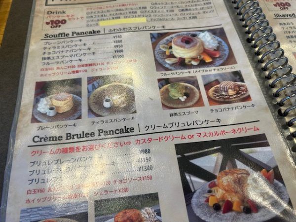 メニューはこんな感じです。うーん、どれにしよう?と迷いまくって、パンケーキも注文してしまったのでした。