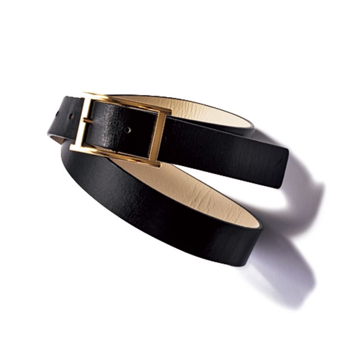 主張しすぎないワイドと、シンプルなゴールドのスクエアバックルがモノトーンのアクセントに最適。¥9,900(アンタイトル)