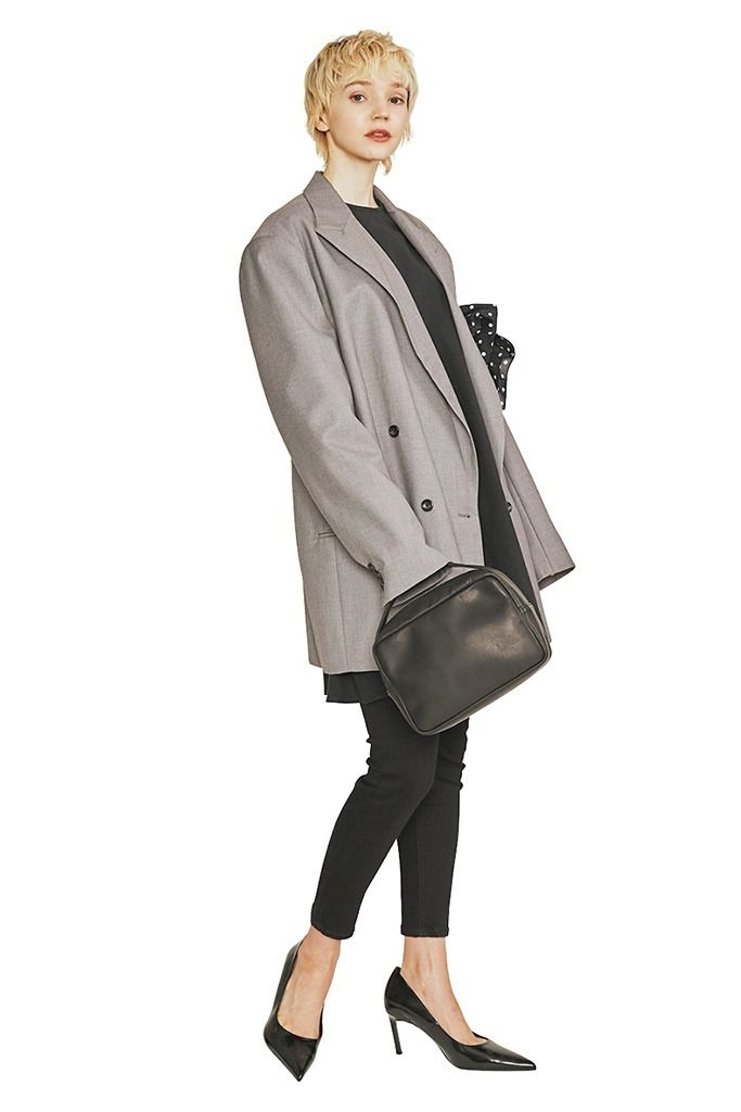 バッグ 5,990円、パンプス 6,590円/ともにZARA(ザラ カスタマーサービス) 光沢感のあるシルバーのパンプスにこの価格で挑戦できるのもうれしいポイント。安定感のあるチャンキーヒールで歩きやすい。バッグは白とブラウンのクラシカルな配色で、装いを品よく見せたいときに重宝。
