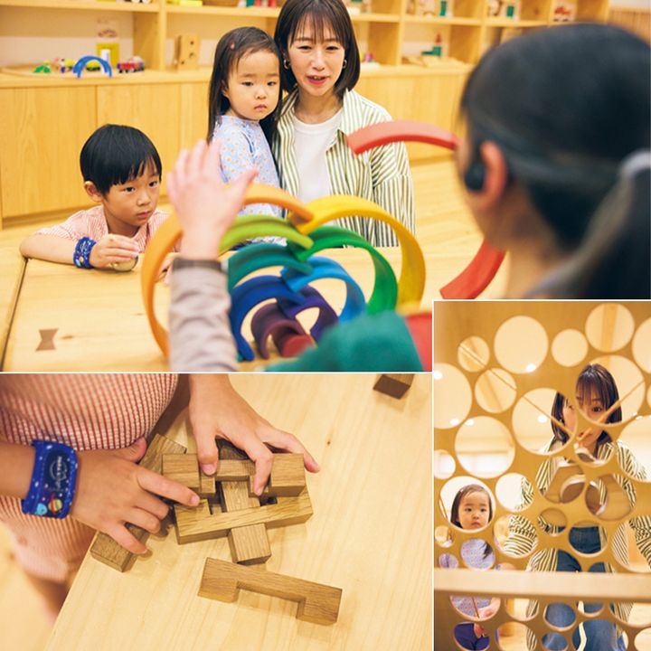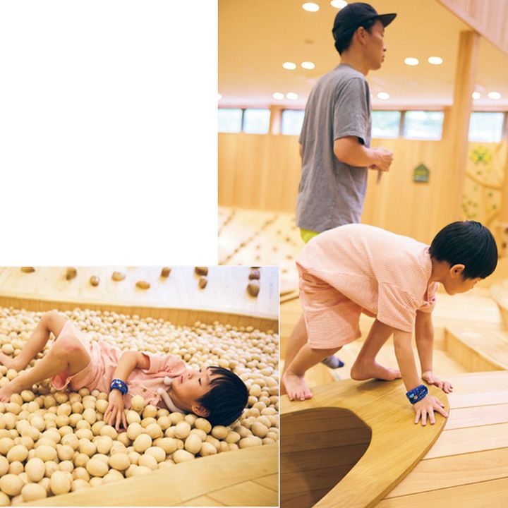 すべて木でできた遊具やおもちゃに温かみを感じながら、子どもの自由な遊び心を育める場所。スタッフやボランティアの方がサポートしてくれるので、遊びの幅も広がり子どもはもちろん大人も童心にかえり遊び尽くします。