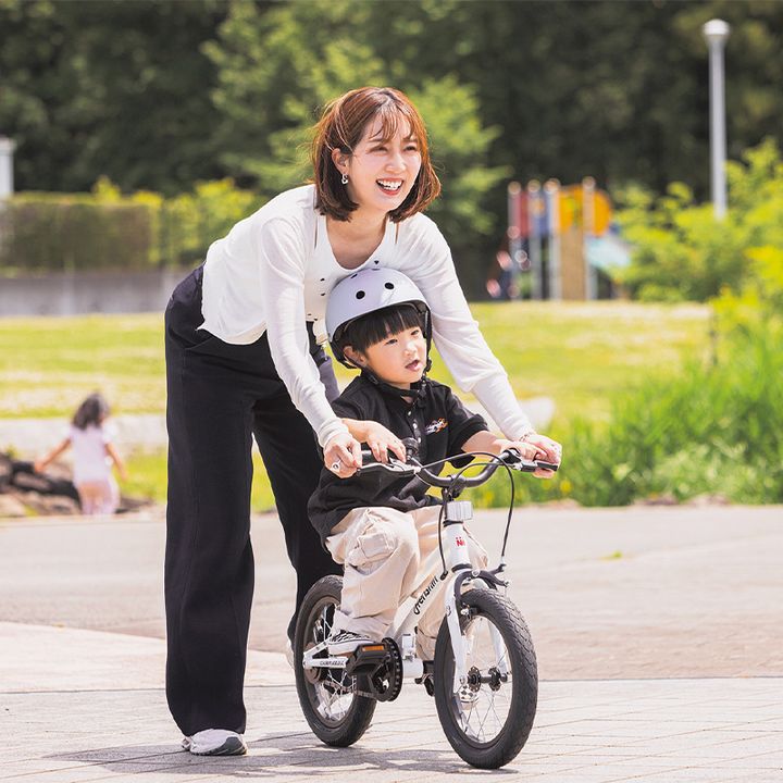 この春からストライダーを卒業し、14インチの自転車にトライ!ゆっくり練習に付き合えるのも、時間と気持ちに余裕がある14時お迎えだからこそ。徐々に乗れるようになって、楽しむ姿に私も嬉しさがひとしお。