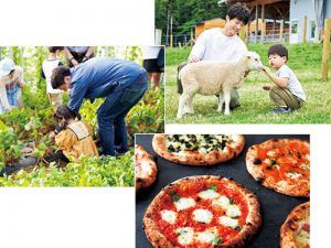 羊のえさやりなど自然を満喫、アート鑑賞や野菜収穫をしてからレストランでピザランチ。