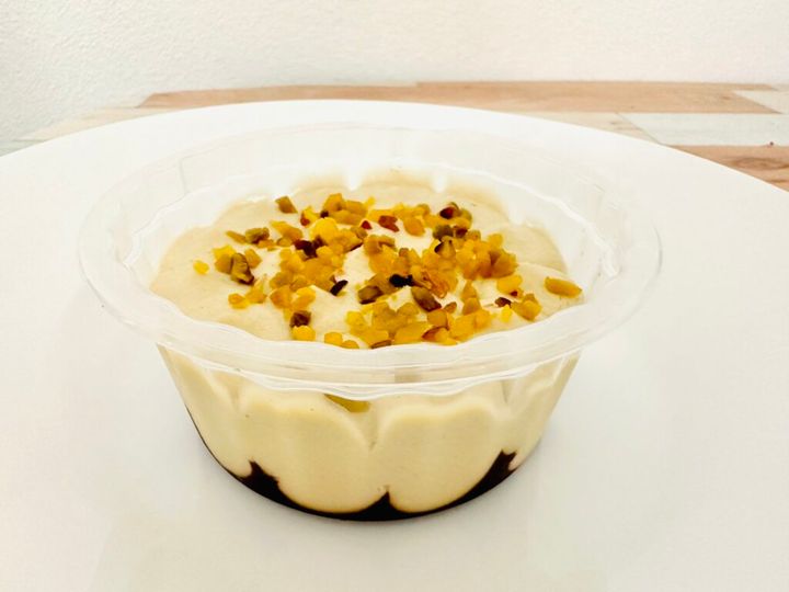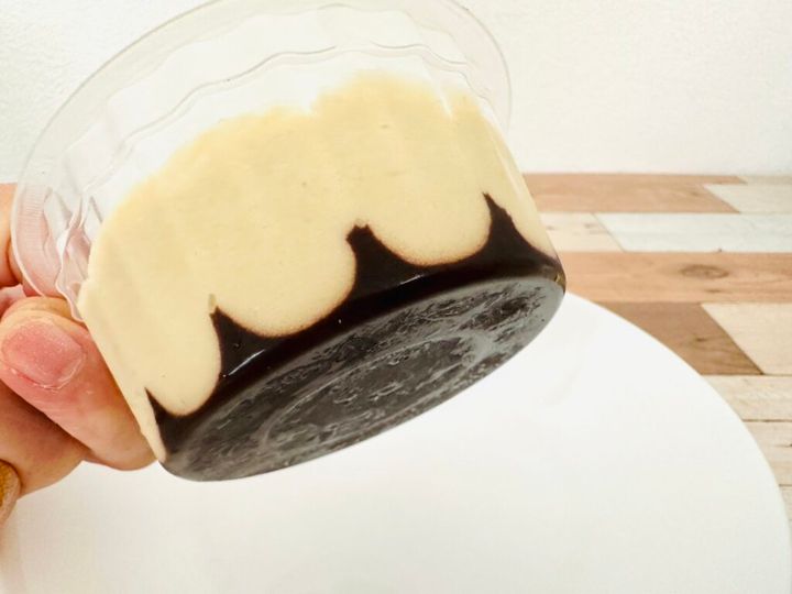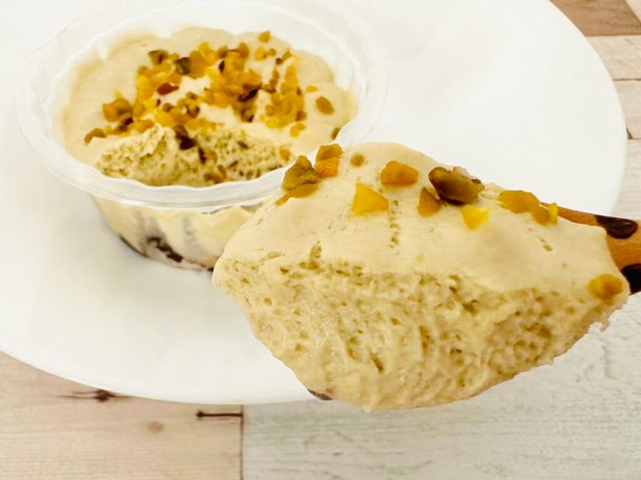『業務スーパー』には、牛乳パックやお豆腐パック風の容器に入ったケーキが複数ありますが、「ピスタチオムース」はカップ入りなので、開封後はなるべく早めに食べなくては! というプレッシャーがありません。それにシェアするのもカンタン!