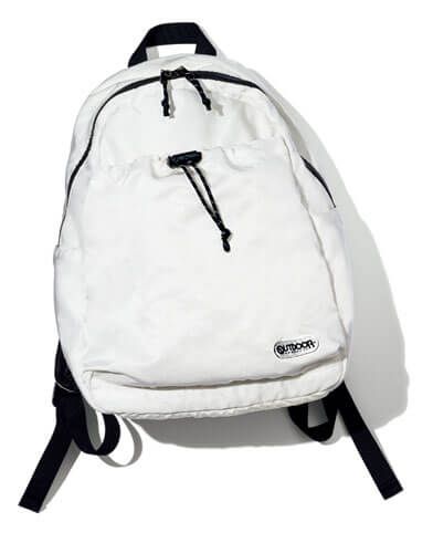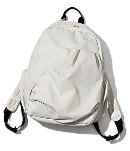 ドロストポケットもスポーティーな旬デザイン。白地のリュックに黒を効かせてクールに。