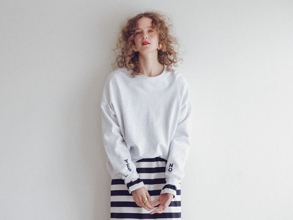アクセントとして定着しているロゴアイテムも、入る位置が少しズレるだけでとたんに新鮮に。フロントよりも主張ひかえめに映るから、カジュアルでもどこか大人っぽさをかもし出せる。