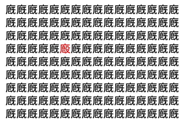 画像に並んだたくさんの「廐」という漢字。 その数144個なのですが・・・、実はその中に1つ違う漢字が紛れ込んでいます!!