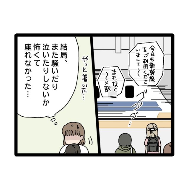 「やっと着いた。結局、また騒いだり泣いたりしないか怖くて座れなかった・・・」と花さんはゲッソリしていました。