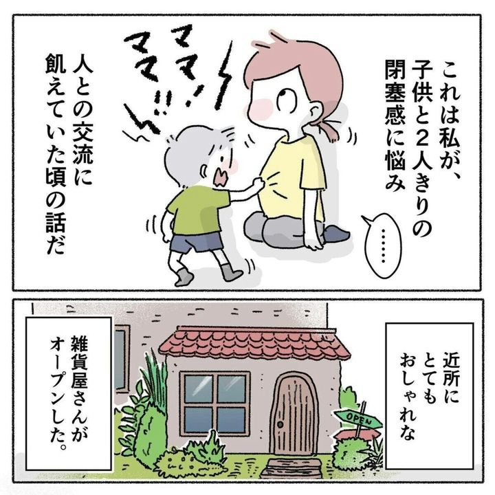 河野りぬさんは、子どもと2人きりの生活に少し疲れ気味。何か楽しいことはないかと、散歩に出かけました。その途中で偶然、雑貨屋さんを見つけます。
