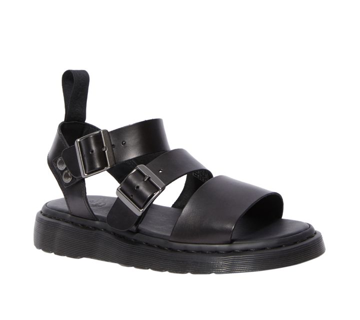 「ブラックレザーでミニマルなデザインが気に入っているドクターマーチンのサンダル。足元にボリュームが出るので、スタイリングのポイントになります」サンダル¥23,100(ドクターマーチン/Dr. Martens AirWair Japan)