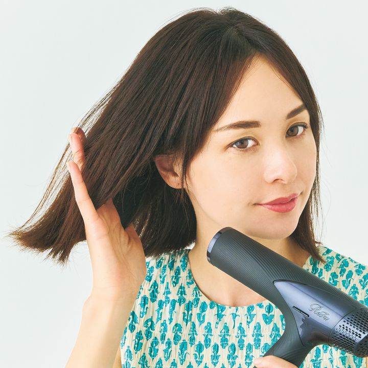 髪の内側から上に向かってドライヤーをあてて乾かすのは余計にバクハツする原因に。毛流れに沿うよう、上から下に向かって乾かして。