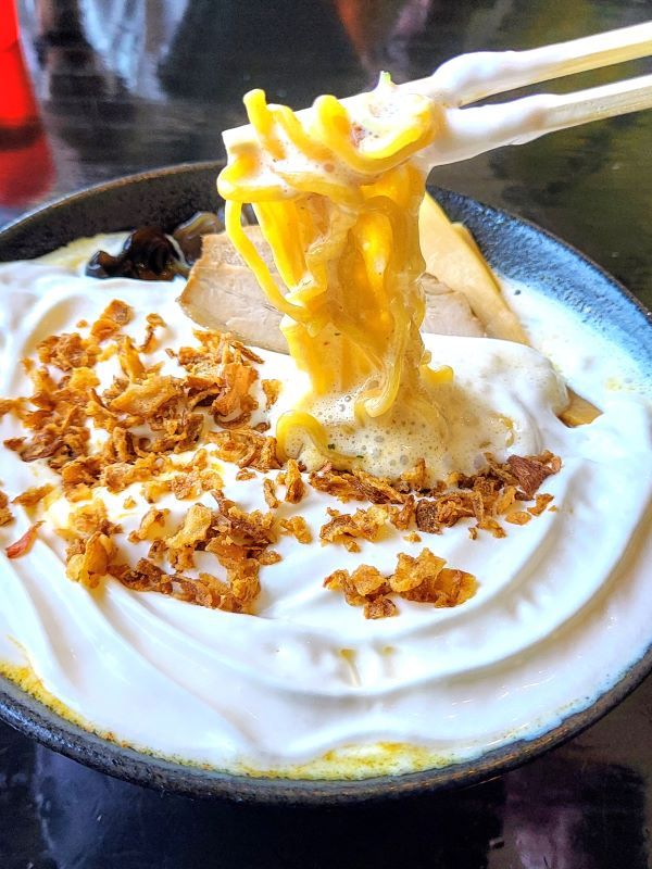 3. 【麺屋 雷文】クリーミーなエスプーマの下にびりびり大辛ラーメン【苫小牧】