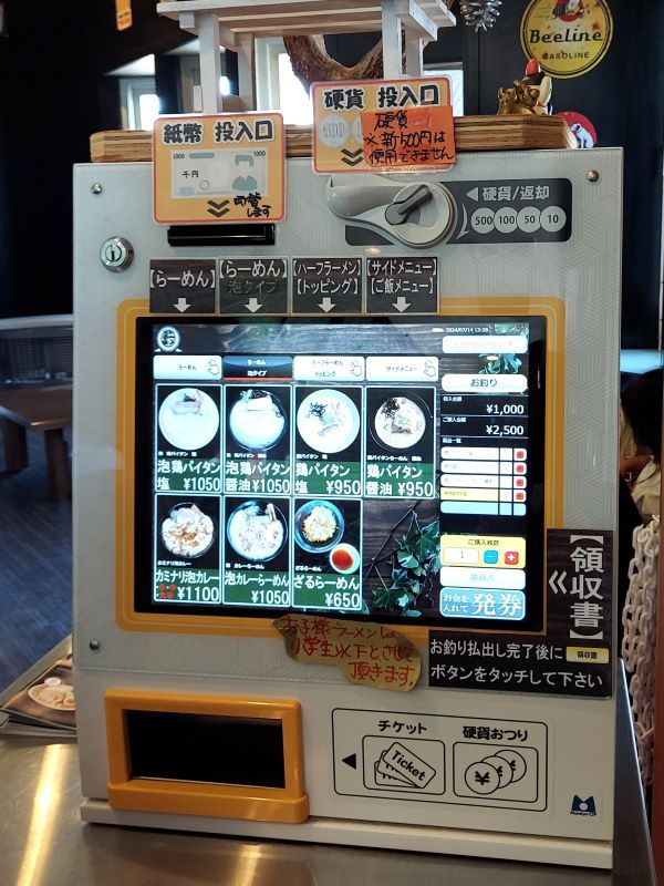 「らーめん」の横のページが「らーめん 泡タイプ」とある。