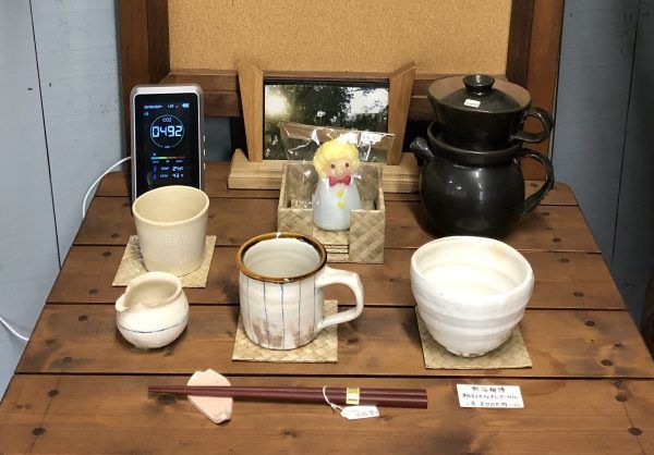 お部屋には、いろいろな作家さんの絵や、陶器などのハンドメイドの作品が展示販売されていました。