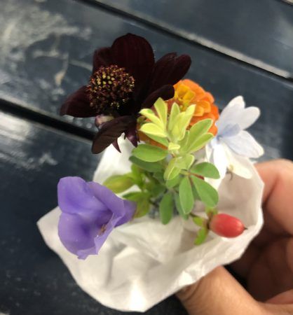 サプライズで、お庭で摘んだ花で作ったかわいいプチ花束をお店の方からプレゼントされ喜んでいました♪