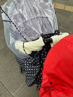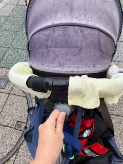 雨でカッパをきることを嫌がる下のちびを簡単に連れて行くことが出来るし、荷物が重くても持ち運びが楽。