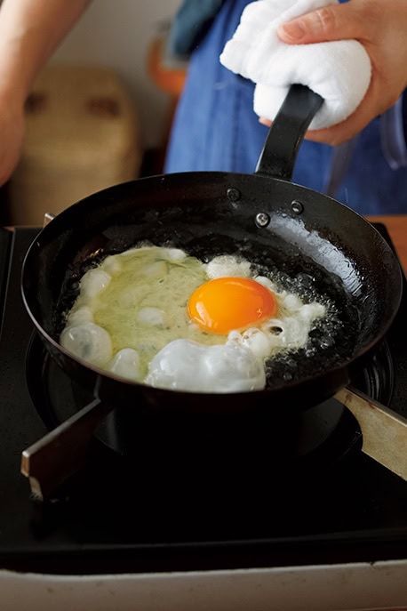 目玉焼きは多めの油で、フチがカリカリになるまで揚げ焼きにして。香ばしく仕上がり、現地の味わいに近づく!