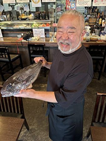 "目鯛ってどんなんや?"って思ってたら、店主が目鯛を持って登場!