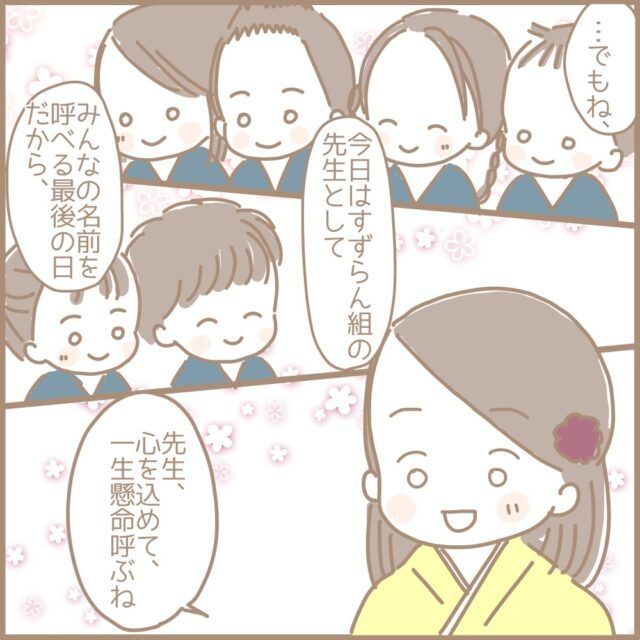3. 担任最後の日「心を込めて名前を呼ぶ」と伝える私に温かなツッコミが入る。新卒で年長の担任になりました[117]|まるちゃんの育児絵日記