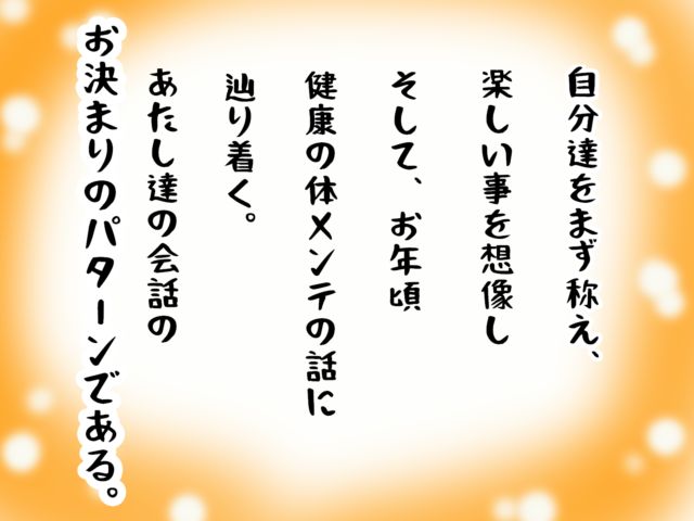 3. まずは頑張りを称えあい、最後は健康の話になるのがお決まりパターン。子育てがひと段落した母たちの会話[1]|てる子の育児日記