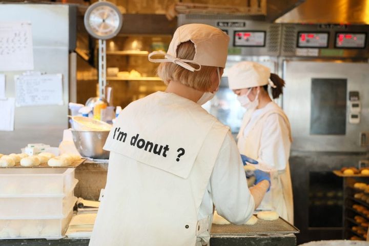 スタイリストの大森伃佑子さんが考案したという、スタッフが着用するユニフォームもかわいい「I’m donut ?」。原宿店は黄色、表参道はピンクと、実は店舗によって少しずつ違うそう。