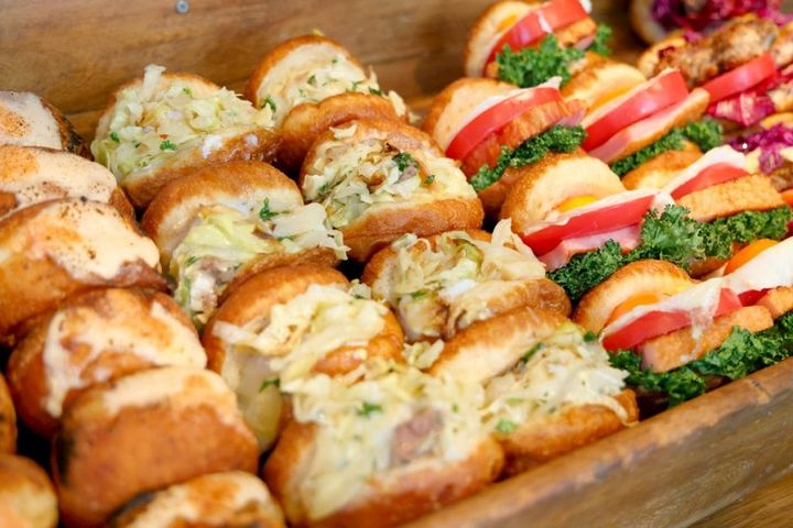 ■うれしい惣菜系。ボリュームたっぷりのドーナツバーガーも
