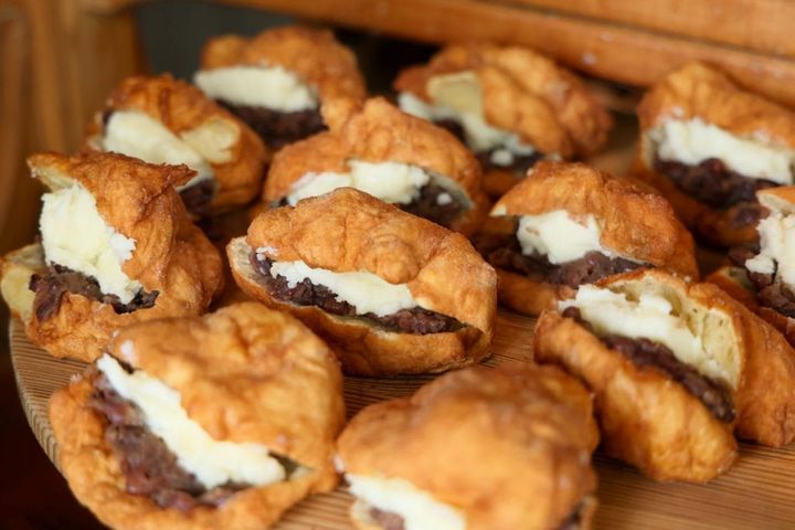 もっちりとしたリュスティック生地に、甘さ控えめに炊いた自家製あんこと練乳バターをサンドした「あんこ練乳」(313円)。胡麻生地にあんことピスタチオバターをサンドした「あんこピスタチオ」(356円)もあります。