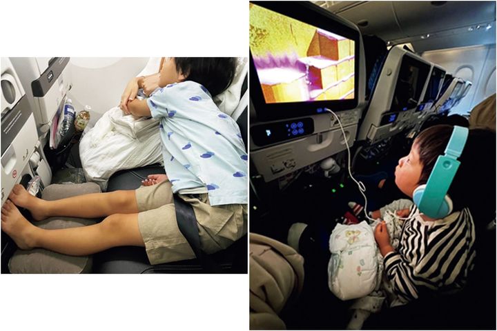 日本からのハワイ便はほとんどが夜便だから“いかに寝かせるか”が、疲れない子連れフライトの肝。フライト中に眠くなるようミルク時間を調整したり、出発まで空港のキッズスペースで遊ばせて。また狭い機内で子どもがリラックスできるグッズを持ち込むのも吉。持ち込みおもちゃとしては、汚さず静かに遊べるシールブックや塗り絵が人気でした!