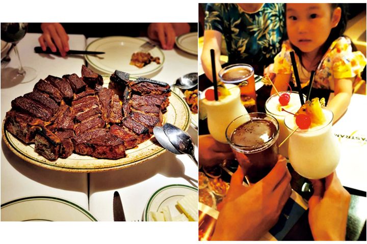 「ウルフギャングはお肉だけでなくスチーム野菜にマッシュポテト、グラタン、パンなど子どもが喜んで食べられるメニューがあって安心です!少しガヤガヤしてるのも◎(笑)」(ライター高萩理奈さん 10歳&5歳女の子ママ)