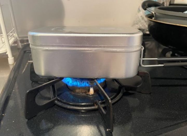 お弁当箱のような見た目で、とても軽いのが特徴。これ一つあれば、ご飯を炊く、具材を炒める、蒸す、煮る…などのすべてができる最強のギアなのです。