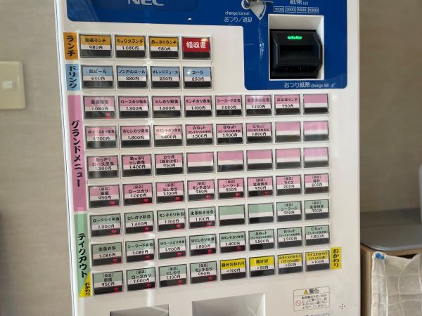 先ずは、店前でメニューを確認、店内の券売機で食券を購入