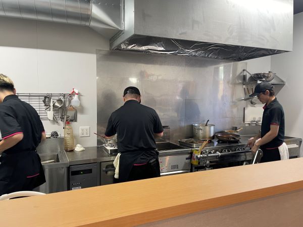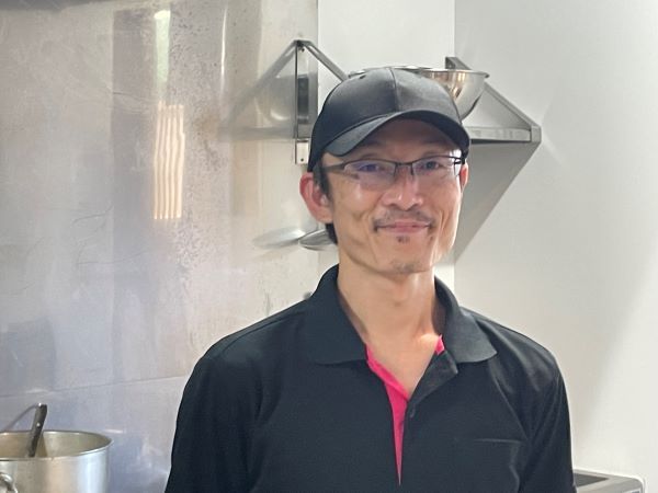 店長の境さん。 開店初日のランチタイムで、厨房、ホールと店内全体に目配せしながら、自らも調理をするなど大忙し。