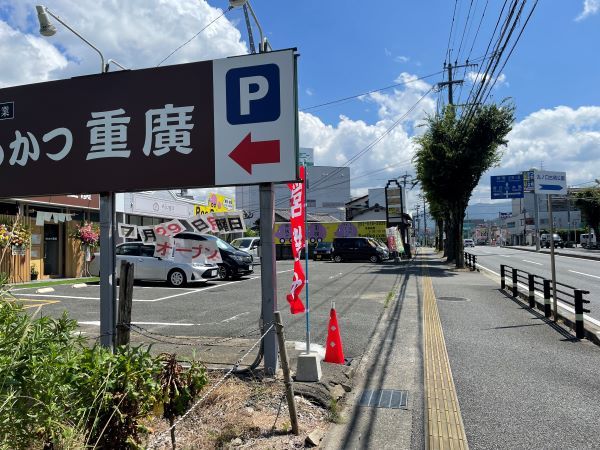場所は、福岡市南区から東脊振トンネルに向かう国道385号線の内田交差点の手前にあります。 ”とんかつ重廣” の大きな茶色い看板が目印です。