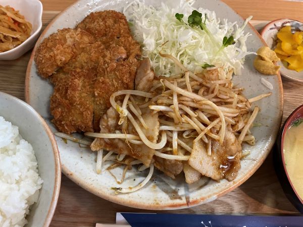 ヒレカツはさすが専門店のクオリティ、3枚が食べやすいサイズに3切れにカットされていました。 生姜焼きは、大判の豚肉、しかも増量サービス?と思うほどの量に、もやしと共に特製タレで良い仕上がり。 キャベツ、生姜タレ、マヨネーズで、最高のシンフォニーを奏でるサラダと一緒に美味しく頂きました。