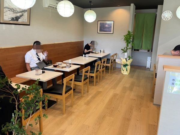 木目を基調とした店内は、スペースも十分で落ち着いて食事を楽しむことができます。