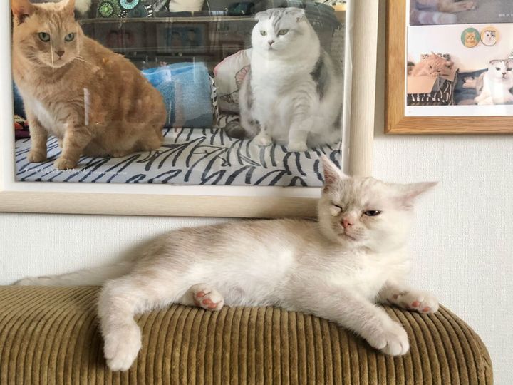 ここがぼくのお気に入りの場所だよ。ぼくの前におうちで暮らしていた、ウーヤくんとミーヤちゃんに見守ってもらえてるから、安心なんだ。
