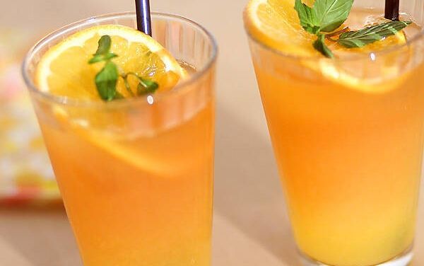 搾りたてのオレンジ果汁入りのアイスティー。さっぱりとした後味で、スイーツとの相性抜群です。仕上げにオレンジの輪切りとミントの葉を添えれば、カフェのアイスティーに早変わり!