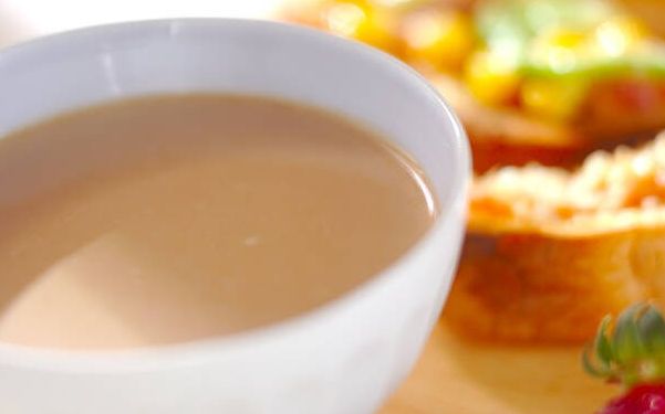 ケーキのおともにはやっぱりコレ! 好みに合わせて甘さやコーヒーの濃さを調整しましょう。牛乳の代わりに豆乳を使えばソイラテになりますよ。